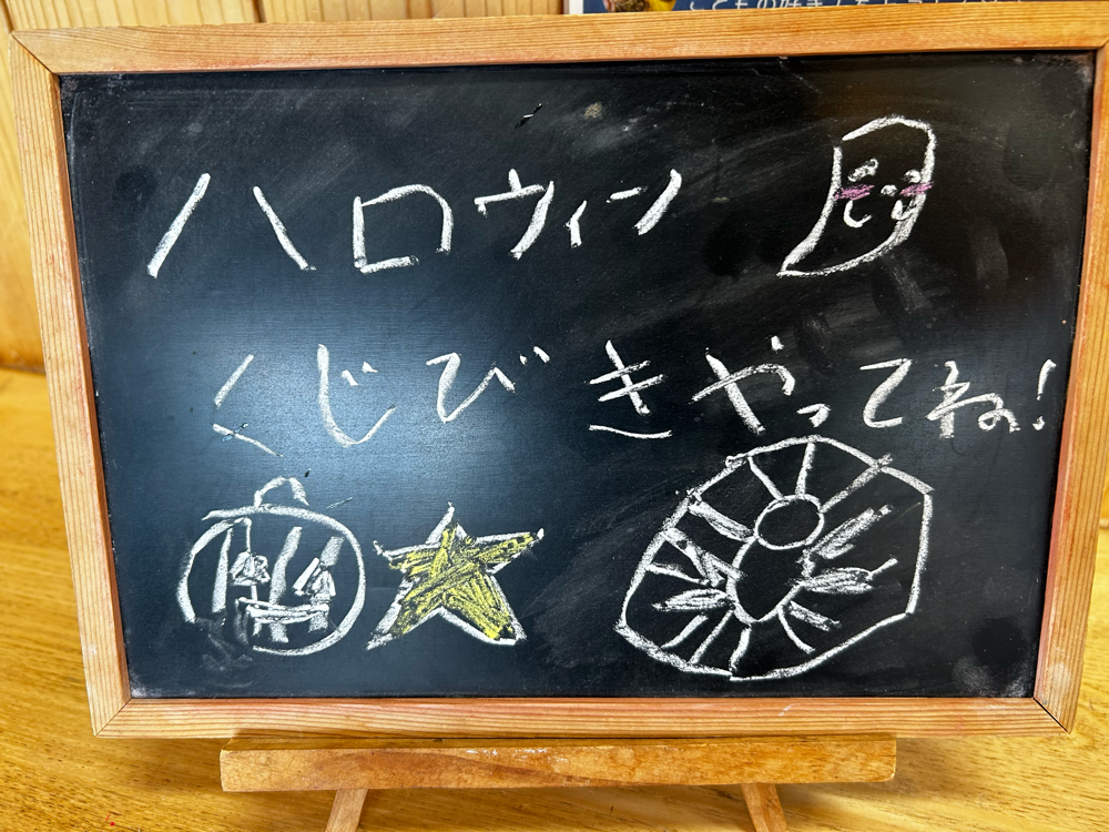 今週の福福だがし横丁では、ハロウィンイベントをこども達が企画し、くじ引きで景品を用意しました!買い出しから飾り付け、看板まで手作りで、当日は大盛況でした。