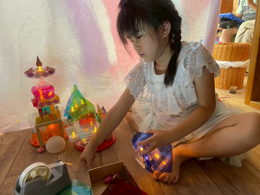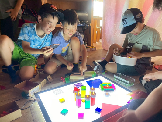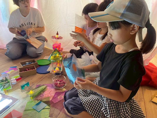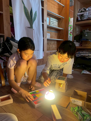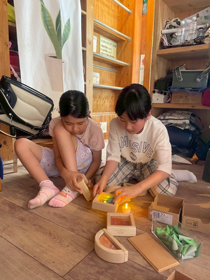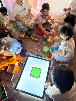 【こどもリビング】の日々 · 2025/06/30 光とつみきあそびwithおもちゃのチッタさん! おもちゃ遊びの達人、おもちゃのチッタ横尾泉さんによるワークショップを今月も行いました!! 今回のテーマは「つみきと光であそぼう」がテーマ! 透明でカラフルなつみきやピクトグラム素材などを組み合わせて、部屋を薄暗くしてライトを使って、幻想的な自分の想像の世界を表現しました。 ヤギさんの名前はココちゃんに決定! 名前の由来は「ココにいるよ〜とよく鳴くから!」です!みんなで決めました😊 リビングの仲間!ヤギのココちゃんにカメの福ちゃん!愛情込めてお世話していきます! tagPlaceholderカテゴリ: