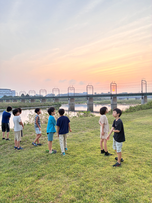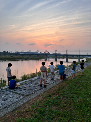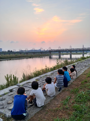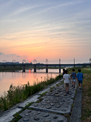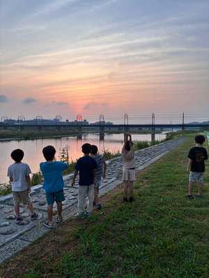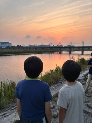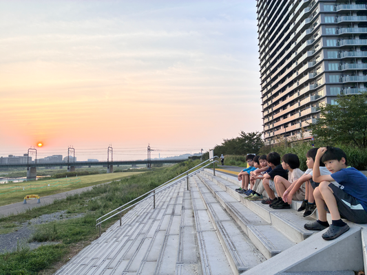 眠さもマックスでテンションは少し低めでしたが、多摩川にキラキラ光ってうつる真っ赤な太陽がとても綺麗で、みんなしばらく心を奪われていました。