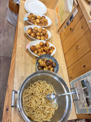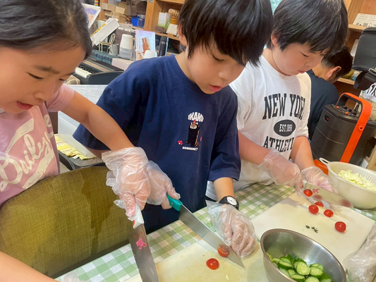 女の子リーダーたちを中心に、今回は冷やし中華、たこやき、おにぎり、サラダ、おまけでポテトも作りました!