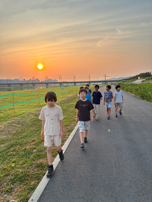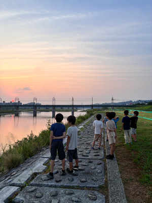 「日の出を見てみたい!」というリーダーたちの意見もあり、希望者の子たちは5:00前に起きて河原へ!