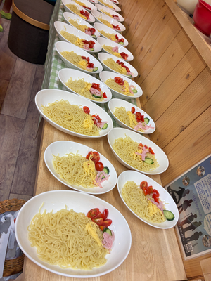 冷やし中華も、全員分の麺を茹でるのは大変でしたが、茹で時間バッチリで美味しくできあがりました!