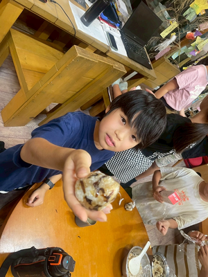 たこやきは、昨年度からたこやき機をつかったおやつづくりを何度か行っていて、毎回とても盛り上がっているのもあって、「みんなが楽しく手伝ってくれそうだし、夏祭りっぽくて美味しから!」とチョイスしていました!