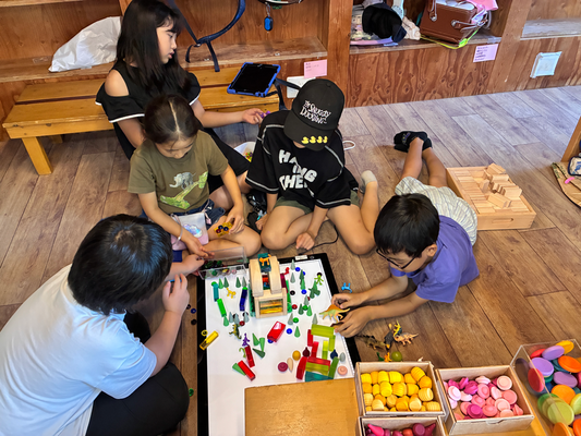 今月もおもちゃのチッタ横尾さんとつみきで表現遊びワークショップを行いました!🟥🟧🟩